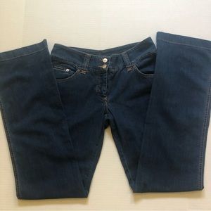 Soft to the touch as only Dolce & Gabbana can make. Made in Italy so it is Italian sizing- 48. This Jean has caramel colored detail stitching. They are NOT high rise but are not too low either. Zipper length is 4” to give an idea. Ample length for the taller fashionista 36” inseam. Bottom leg width is 10” so wider than boot cut. Never worn.