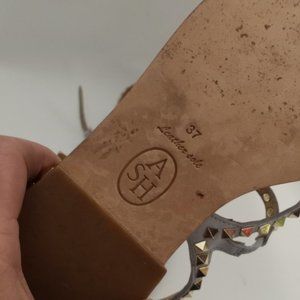 ASH "Peps" Icey-blue Gold Pyramid Studded Flat Sandals, size 37