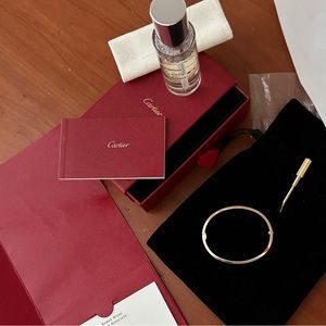 Hello, Is this still available? Does it come with a certificate from the Cartier boutique and the original box? Also, is it the Love bracelet in yellow gold, small size, size 16? Thank you!
