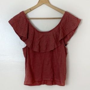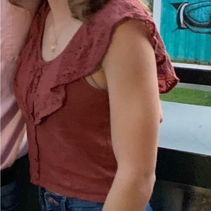 AEO Terracotta Copper Rust Embroidered Eyelet Lace Ruffle Crop Blouse Tank Top