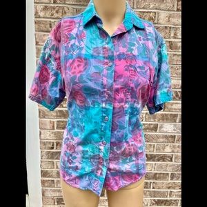 Color: Blue. Pink. Purple. Rose Floral Print.