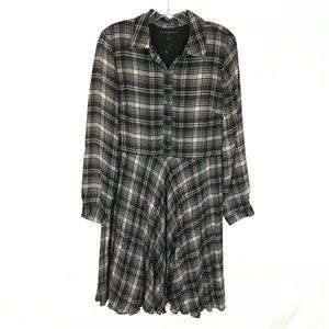 Womens Size 12 Banana Republic Plaid Button Front Long Sleeve Pleated Dress