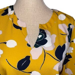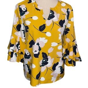 Ann Taylor Factory Belles Sleeved Women’s Floral Blouse Yellow White Small