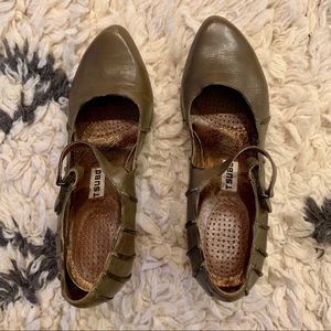 Tsubo Olive Leather Mary Jane Heels 8.5