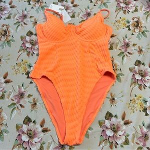 NWT! GOOD AMERICAN Neon Orange Terry Cloth One Piece Swimsuit Size 5 (2X)