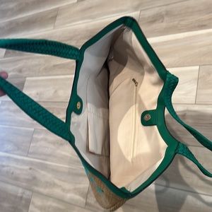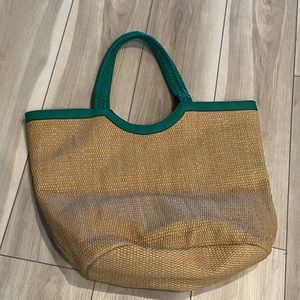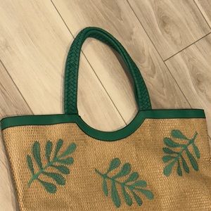 EUC Tropical Leaf Print Everyday Bag Wicker Woven Purse Handbag Beach Tote