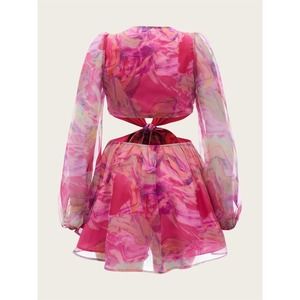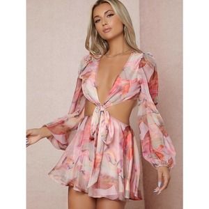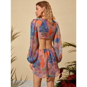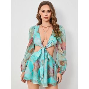 boho Lantern Sleeve Knot Cutout Waist Chiffon Romper