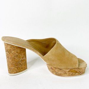 MERCEDES CASTILLO Sand Nude Chiara Platform Mule A stacked platform and sculptural heel in an ivory hue play beautifully against the black kid suede of an ultra-modern mule featuring an asymmetrical strap. 4" (100mm) heel; 1" platform Leather upper, lining and sole Size 10.5 Shoes are in excellent pre-owned condition and run true to size. Any sizing inquires please refer to the brands specific size charts. All signs of wear are closely photographed and documented.