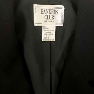 Bankers Club black crop double breasted blazer with pocket at breast. Lined.