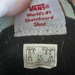 These classic Black & White Van’s SK8-HI Shoes Sneakers Hi Top are made of canvas and suede and are in great pre-loved condition. Slight discoloring on the white part of the sole’s edge due to normal wear. In excellent condition otherwise. See photos for details. Let me know if you have any questions. 8 women / 6.5 men / 38.5 EU