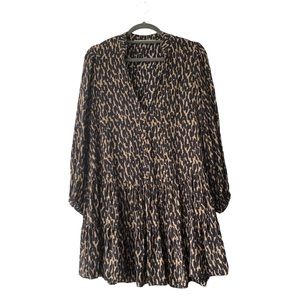 Zara ladies brown black animal print 3/4 sleeve button up smock floaty dress