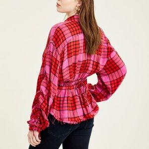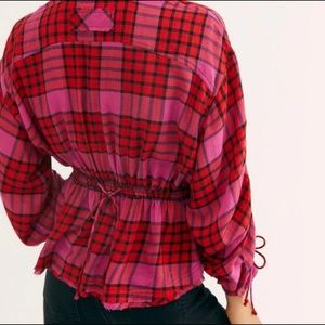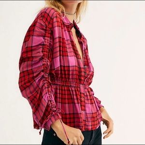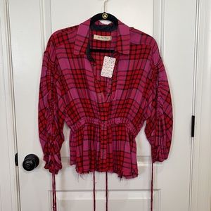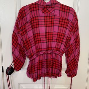 FREE PEOPLE | pacific dawn pink plaid cinched waist top small Brand new with tags