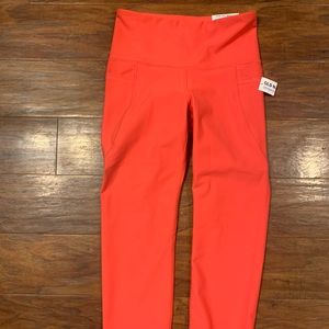 Brand new with tags. Beautiful vibrant coral/orange color! Womens size small. Crop workout leggings. Great material!