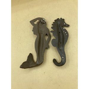 Beach Decor Coat Hat Wall Hooks Cast Iron Mermaid & Seahorse. good condition no screws