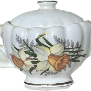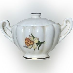 π Royal Dover England Cream and Sugar Bowl with Lid Daffodil Bone China Set