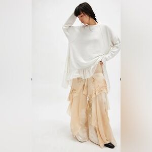 Free People Low Slung Pull On Cord Pants Tie Cord Cinch Hem Tan