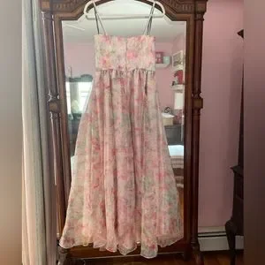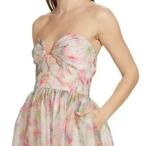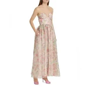 ML Monique Lhuillier Floral Crinkled Organza Maxi Dress