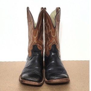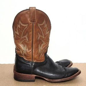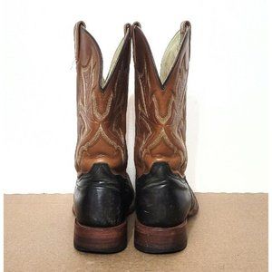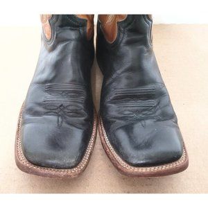Stetson Black Brown Leather Cowboy Western Boots Mens 11.5D Square Toe Rodeo