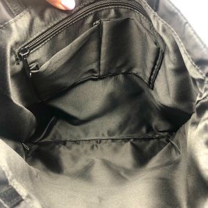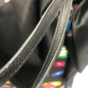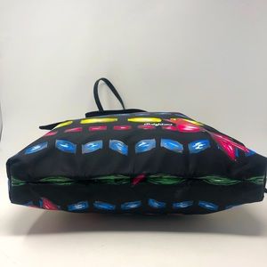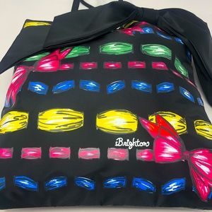 New without tags Brighton colorful “Take A Beau” shoulder bag tote purse. Thick padded black nylon tote with multicolored allover print and huge black satin bow on front. Inside back zipper pocket with 2 slip pockets. Black silky satin lining. Top magnetic snap closure. Please see all photos. Measures about 15x14.5x2.5”. Retail $125.