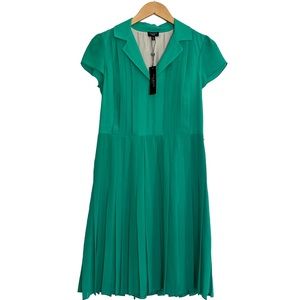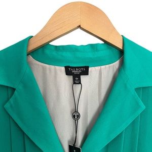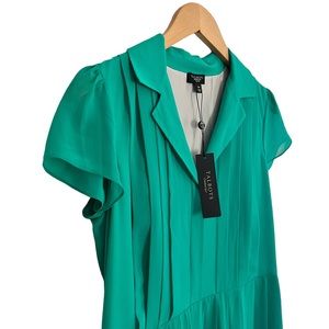 Talbots Size 6P Teal Pleated V-Neck Collared Short Sleeve Midi Dress