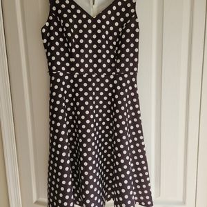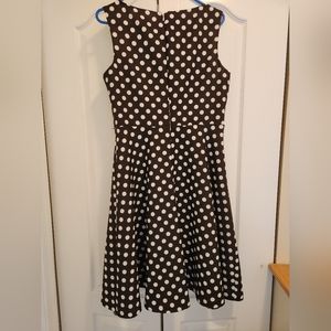 Never worn. Very cute dark brown, sleeveless, fit and flare dress with white polka dots. Fully lined size 10.
