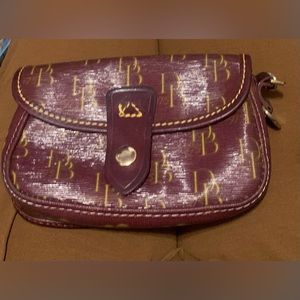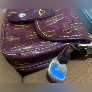 Dooney & Bourke Burgundy Signature Leather & Canvas Flap Wristlet