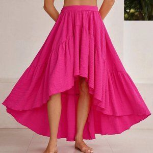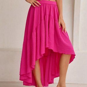 Pink Boho Womens Solid High Low Ruffle Hem Skirt
