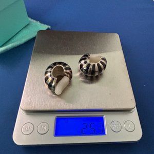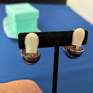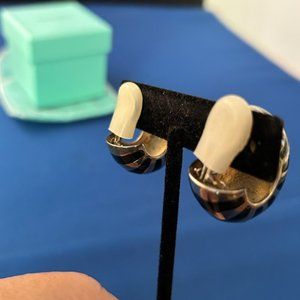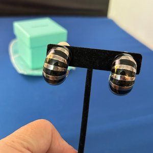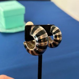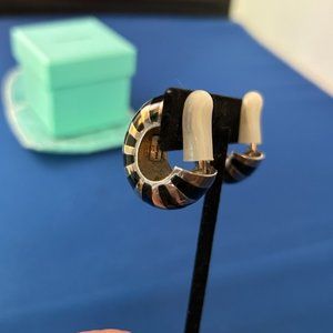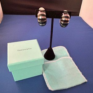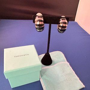Tiffany & Co. 925 Silver Black Blue Enamel Shrimp Omega Earrings.