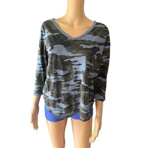 Dylan Camo Print V Neck 3/4 Sleeve T-Shirt Women’s Size Small