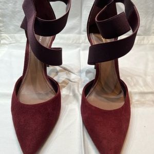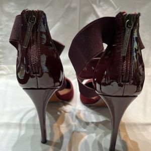 Donald J Pliner high heeled burgundy suede and patent pumps. They are size 8.5 N with zippers at the heel. Only worn a couple of times. These are a narrow size shoe. These are 4 inch heels. They are a beautiful burgundy color but there isn't a burgundy color selection in the dropdown menu here.