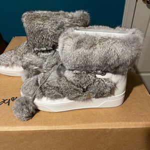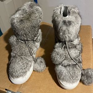 @scarol1 I just looked again, and doesn’t appear so. The rabbit fur is pretty plush. Where the laces are, the fur pulls a bit which is where you see a thin-like appearance. But they’ve never been worn and in perfect condition. I can take a few closer pics if you’d like
