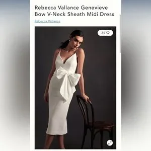 Rebecca Vallance Genevieve Bow V-Neck Sheath Midi Dress