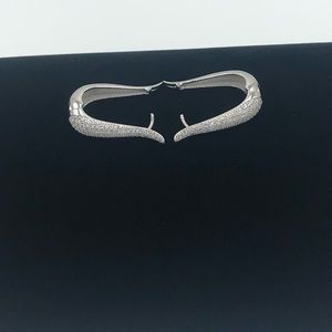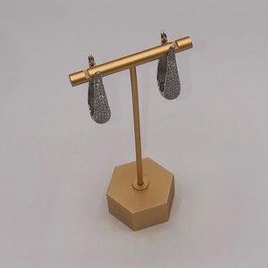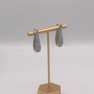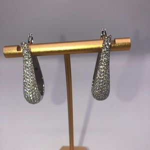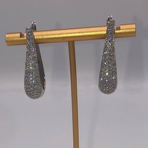 Each earring is set with 7 rows of round brilliant solitaire diamond simulate gems totaling 3ct.tw.