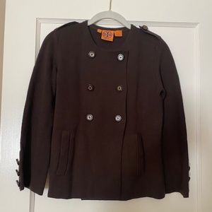 Tory Burch double breasted sweater in rich chocolate brown. Great condition, buttons have gold accents and are also marked Tory Burch. Very minor pilling.