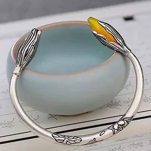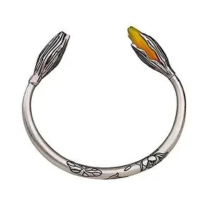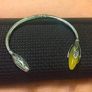 Handmade Jade Flower Sterling Silver Bangle Bracelet