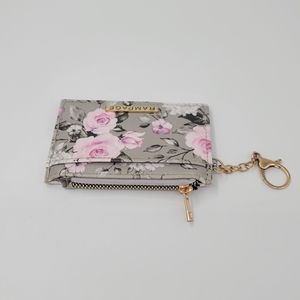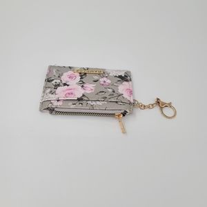 Rampage Floral Gray & Pink Card Holder Keychain ID Card Holder Zip Up Coin Purse