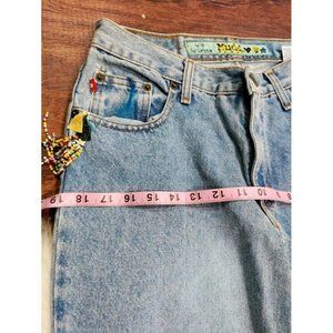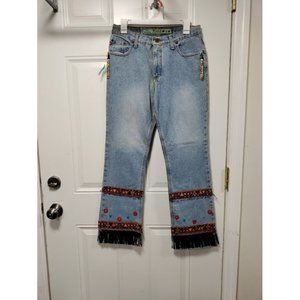 Mudd Cotton Mid Rise Straight Leg Embroidered Fringe Denim Jeans Blue Size 9