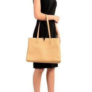 Versace Women's 100% Textured Leather V-Logo Tote Handbag Shoulder Bag