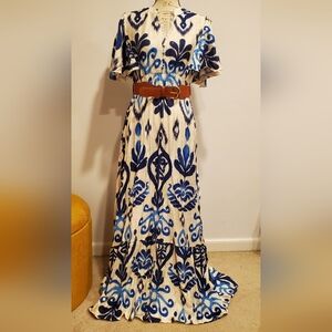 Eliza J Women Lace Burgundy Ruffle Skirt Dress 3/4 Double Ruffle Sleeve. Size 2