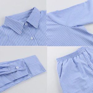 Turn-Down Collar Long Sleeve Shirt+ Short Pants - Blue and white striped - Size Small
