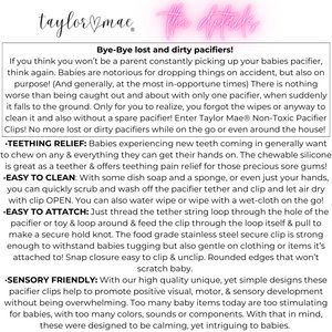 TAYLOR MAE® Non-Toxic BPA Free Pacifier Clips Tethers Holder Baby Teethers
