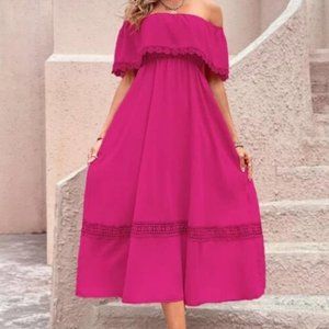 Hot Pink Off Shoulder Midi Dress