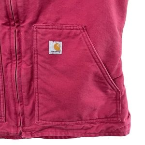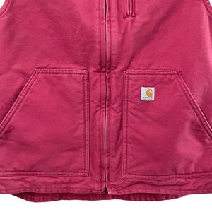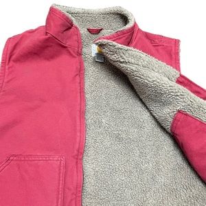 Carhartt Sherpa Lined Duck Canvas Mock Neck Vest Jacket Sz Med Crab Apple WV001
