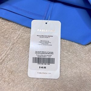 Brand new with tags. Top is burgundy with criss cross straps in the back. Shorts are light blue with burgundy stripes at the mesh side pockets, one inner pocket for money, cards, keys, etc.