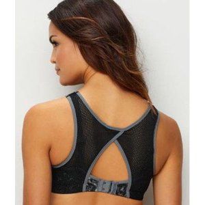 Mesh panels and a bold cutout at back enhance the sporty style of this high-impact bra from Maidenform.