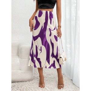 abstract Print Plisse Skirt small pleat midi skirt