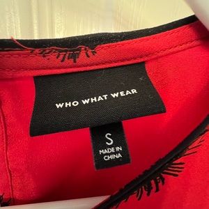 Who What Wear red and back dress. Ruffles at shoulders and ties at neck in back.