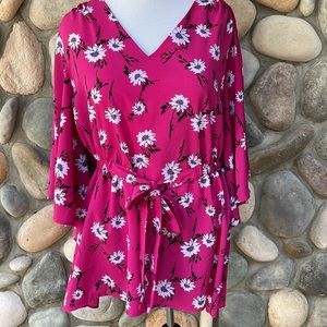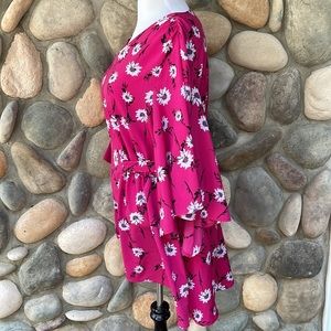 Lane Bryant Hot Pink Floral Flutter Bell Sleeve Blouse 14/16