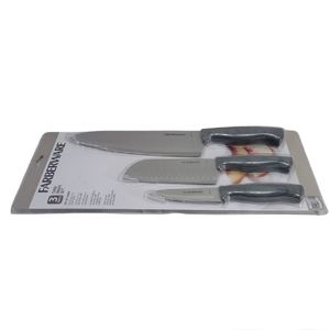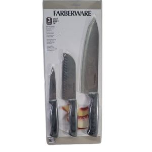 Farberware Set Of 3 Chef, Santoku & Paring Knives Steinless Steel New