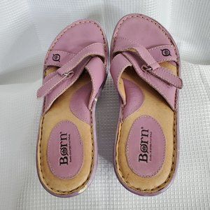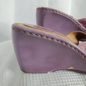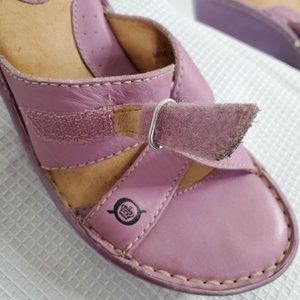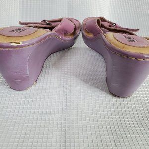 Born Handcrafted Footwear Size 8/39 Leather Wedge Sandals Heels Straps Purple